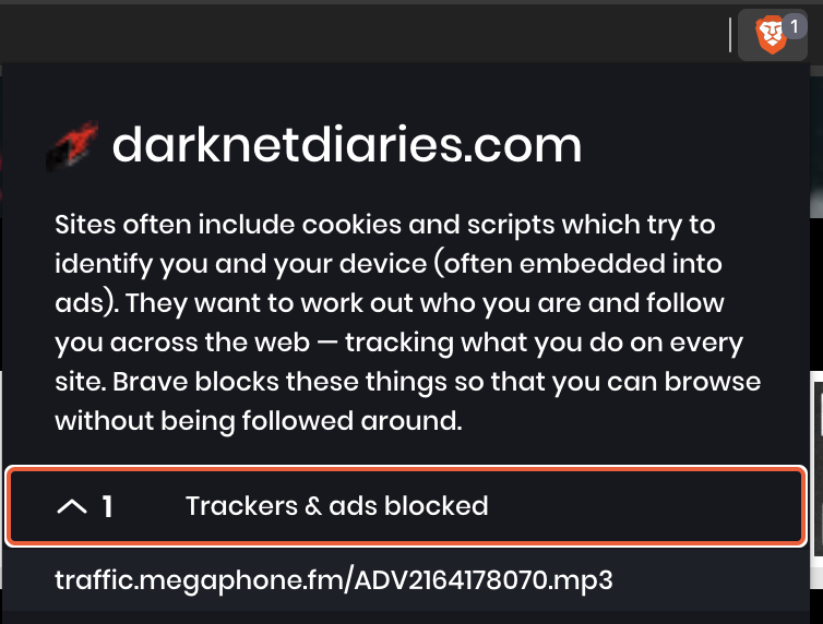 And there's the real problem, Brave blocked traffic.megaphone.fm because it considers it a tracker. This means podcast listeners cannot play podcasts if they use certain privacy tools and tracker blockers. It's not like Brave can block just the tracking part of Megaphone and let through the audio. No it blocks the audio which fundamentally breaks the podcast listening experience.